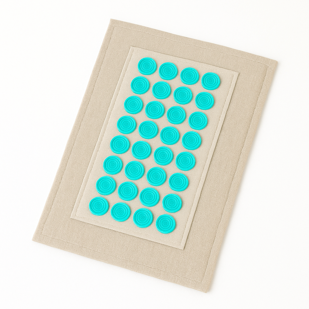 An acupressure mat is a specialised mat with hundreds of pressure points that stimulate specific areas of the body. It promotes relaxation, helps release muscle tension, and enhances overall well-being.
